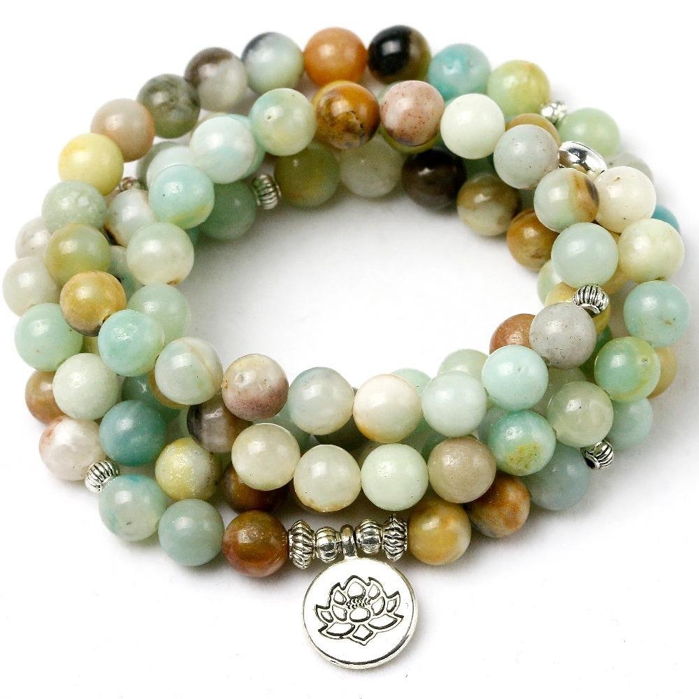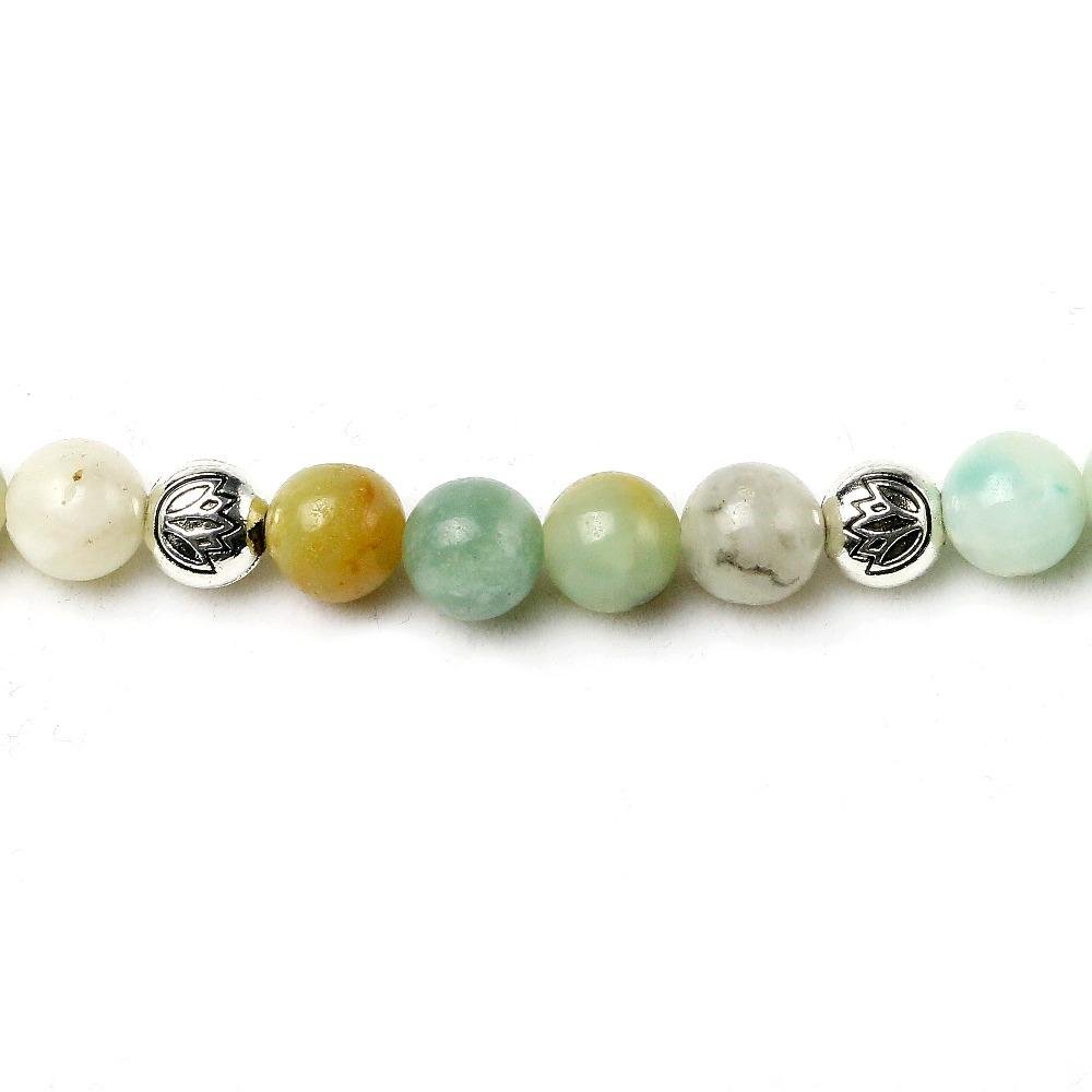 Amazonit ist bekannt für seine beruhigenden und harmonisierenden Eigenschaften. Er hilft dabei, innere Konflikte zu lösen und wirkt beruhigend auf dein Nervensystem. Trage diese Mala Kette, um das Gleichgewicht in deinem Leben zu fördern, negative Energien abzuwenden und deine Intuition zu stärken.