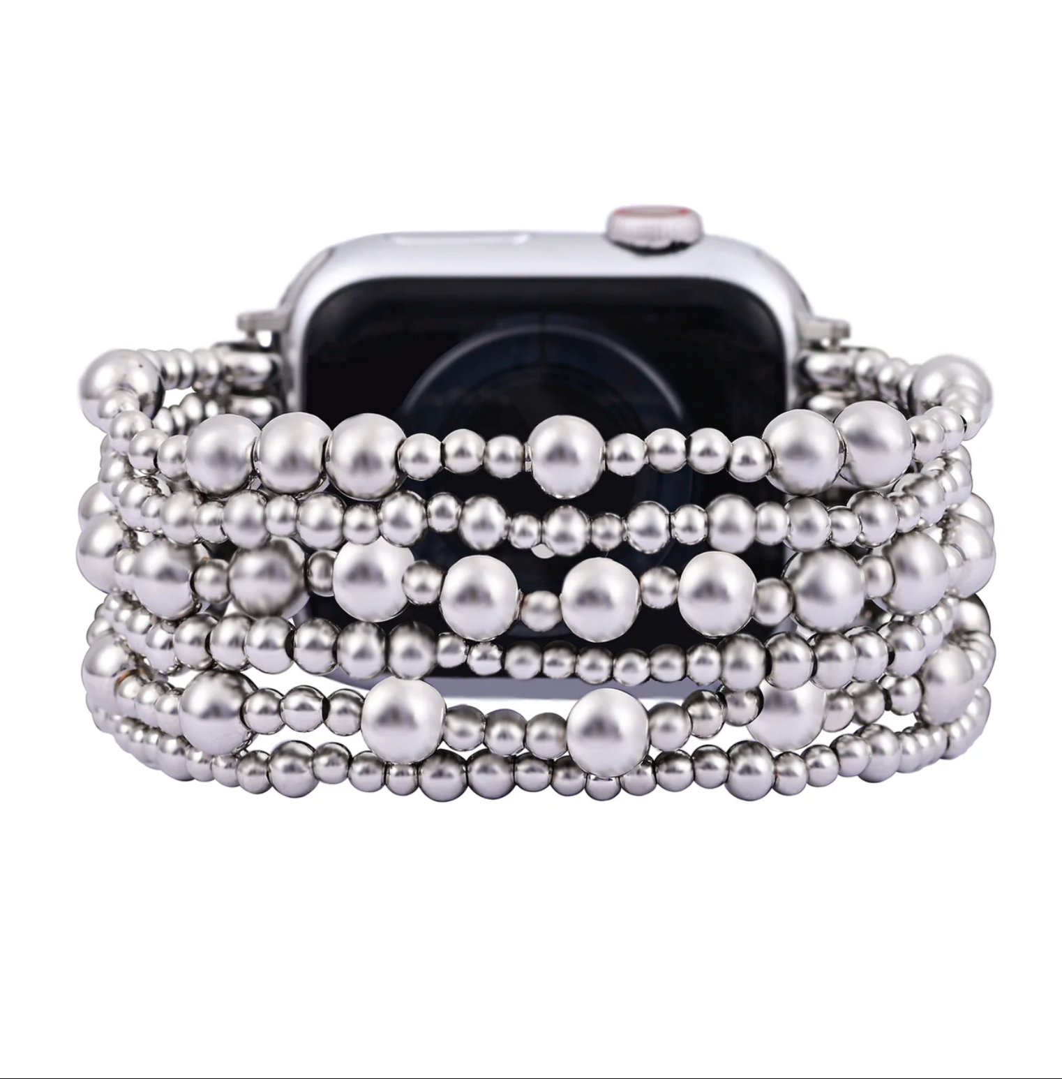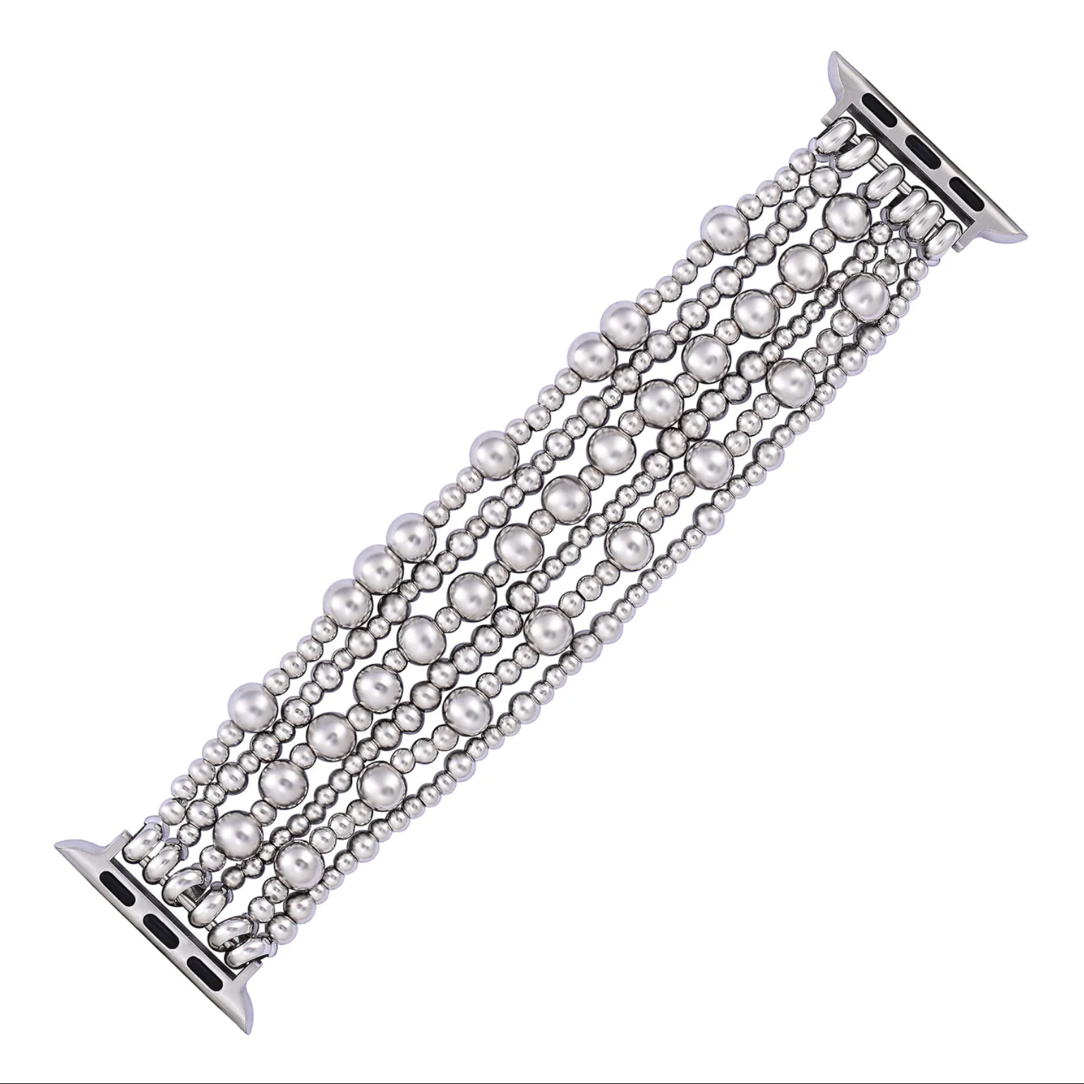 Realizzato in pregiata lega di zinco e perle, il braccialetto si adatta senza sforzo al tuo polso grazie alla sua struttura flessibile. Il design raffinato e gli accenti argentati trasformano il tuo Apple Watch in un vero gioiello, che aggiunge un tocco di stile e attirerà sicuramente l'attenzione.
