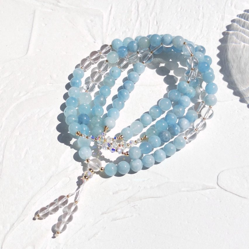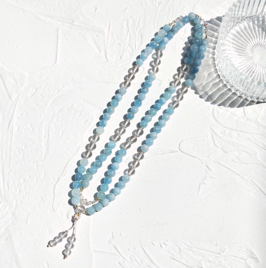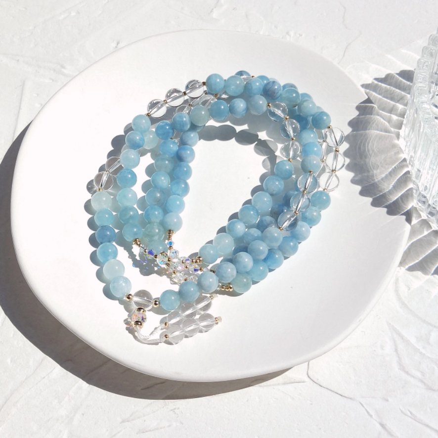 Scopri la nostra collana Shiny Aquamarine : un elegante gioiello realizzato con le più pregiate perle di acquamarina e quarzo, che ti donerà pace interiore, chiarezza e armonia.