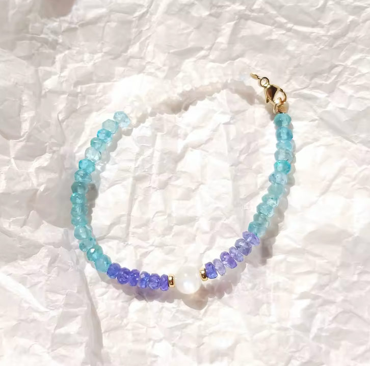 Tauche ein in die Welt des Aquamarin-Schmucks – handgefertigte Stücke, die die klare, blaue Energie dieses Edelsteins einfangen. Ob als Aquamarin-Armband für einen Hauch von Leichtigkeit, Aquamarin-Mala für deine Meditation, Aquamarin-Halskette als strahlendes Highlight oder Aquamarin-Ring für subtile Eleganz – jedes Schmuckstück bringt Frische und Gelassenheit in dein Leben.