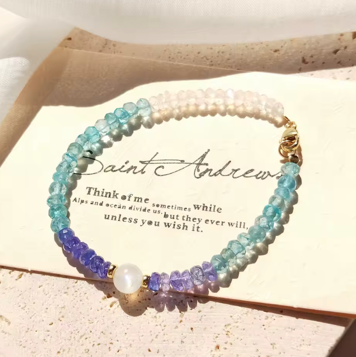 Aquamarin, der "Stein des Meeres", verdankt seinen Namen seiner hellblauen, wasserähnlichen Farbe. Er symbolisiert Reinheit, Gelassenheit und Mut – Eigenschaften, die seit jeher mit dem Ozean verbunden sind. In unserem Aquamarin-Schmuck, wie den beliebten Aquamarin-Armbändern oder Aquamarin-Mala-Ketten, bringen wir diese Energie zu dir. Trage ihn als Aquamarin-Halskette oder Ring und spüre seine beruhigende Wirkung. Er harmoniert perfekt mit anderen Edelsteinen wie Bergkristall für Klarheit oder Mondstein für Intuition. Unsere Aquamarin-Schmuckstücke sind handgefertigt und ideal für alle, die Stil mit Spiritualität verbinden möchten!