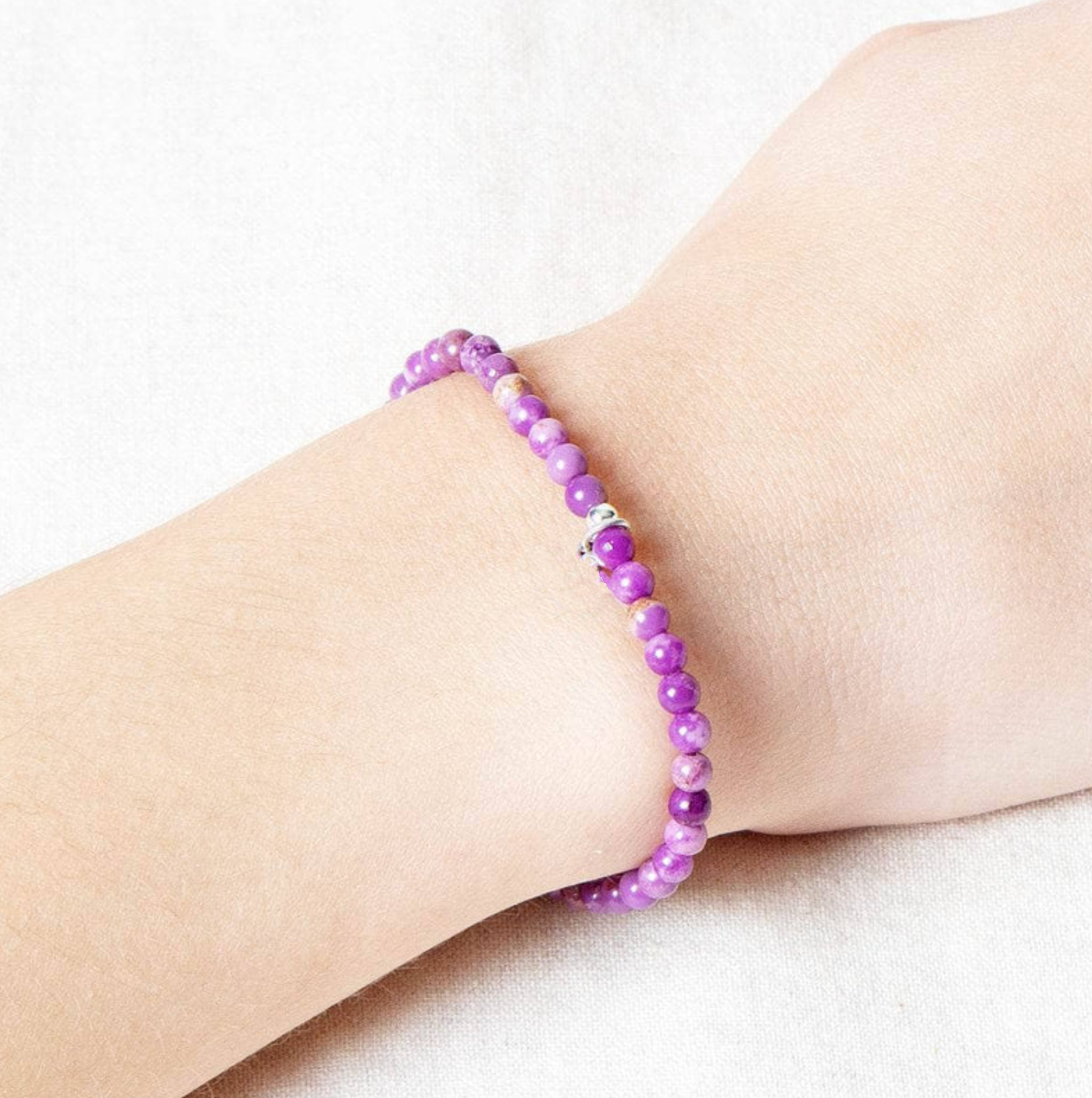 Il braccialetto mini in fosfosiderite è più di un semplice gioiello raffinato: è un delicato compagno nel tuo cammino verso la pace interiore e la guarigione emotiva. Con la sua delicata colorazione viola-rosa, ti ricorda ogni giorno di aprire il tuo cuore e di trattarti con amore.