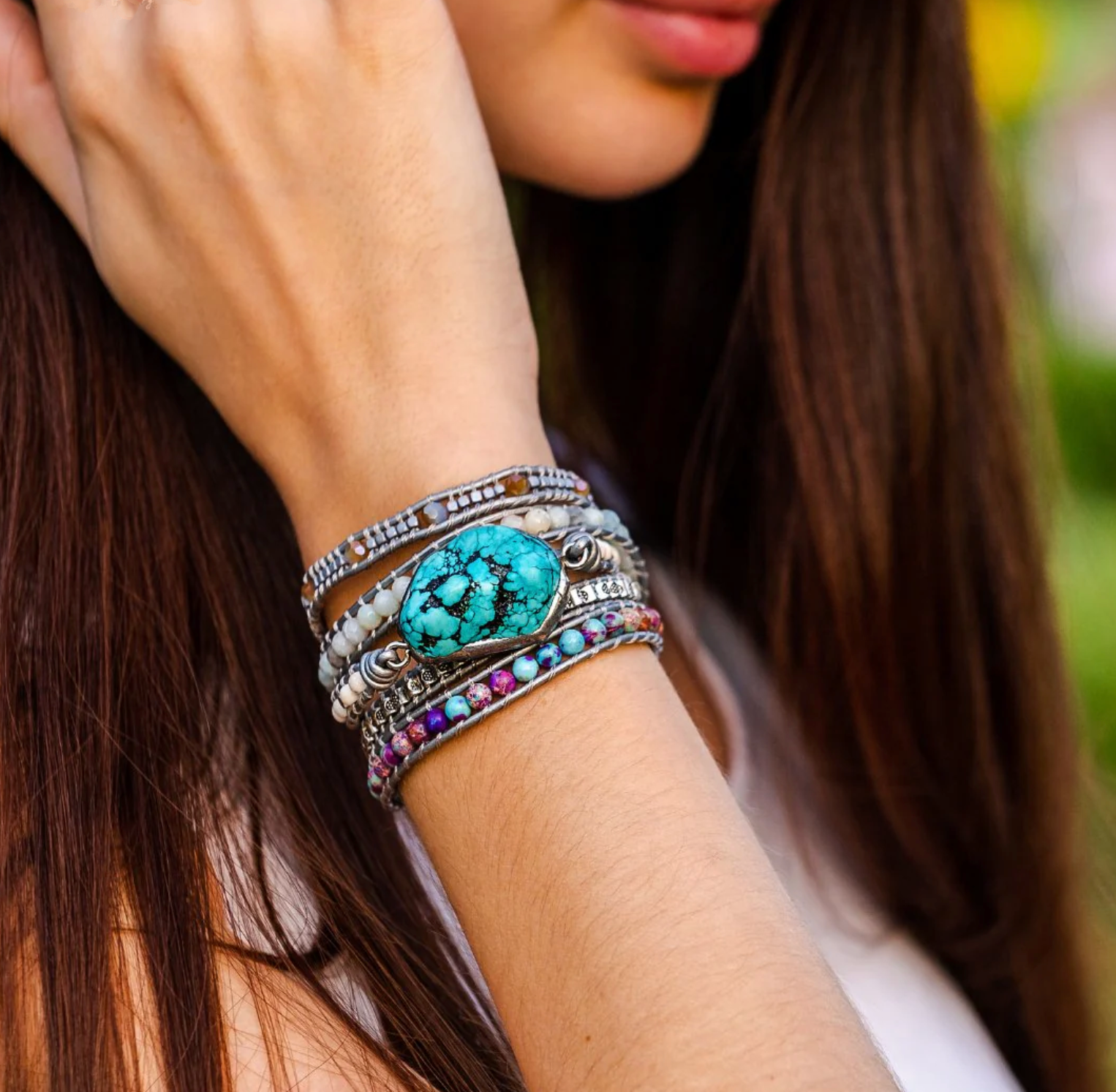 ✦ Pietre naturali di alta qualità: turchese, diaspro e amazzonite