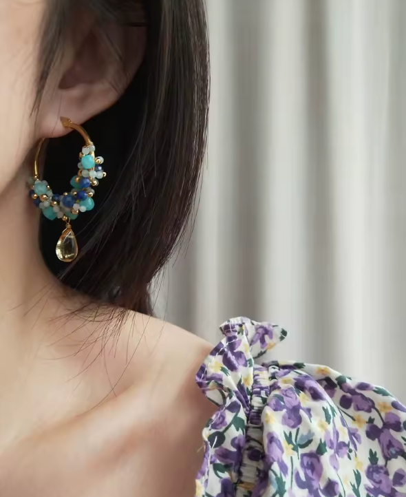 Questi orecchini uniscono un design delicato alla bellezza naturale di vere pietre preziose: un accessorio elegante per tutti i giorni e un tocco di raffinatezza per i momenti speciali.