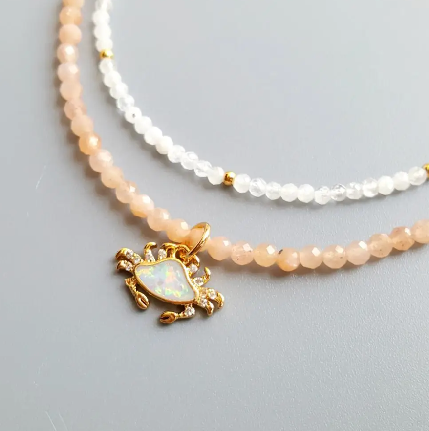 ✥ Perle naturali di citrino e pietra di luna, ciondolo in lega di zinco.