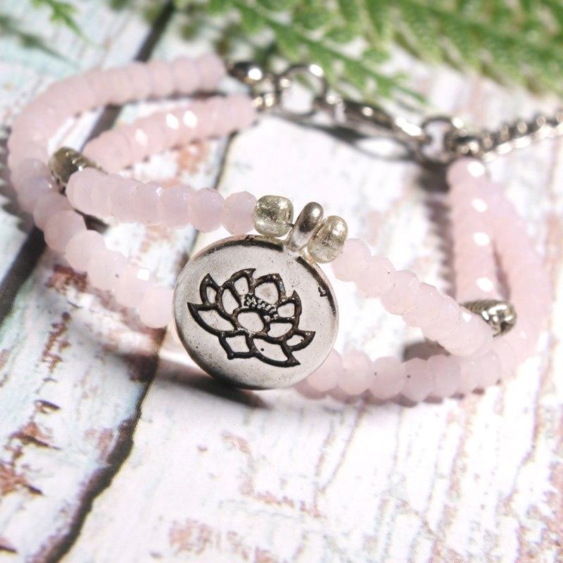✦ Lega di zinco, perle di quarzo rosa naturale