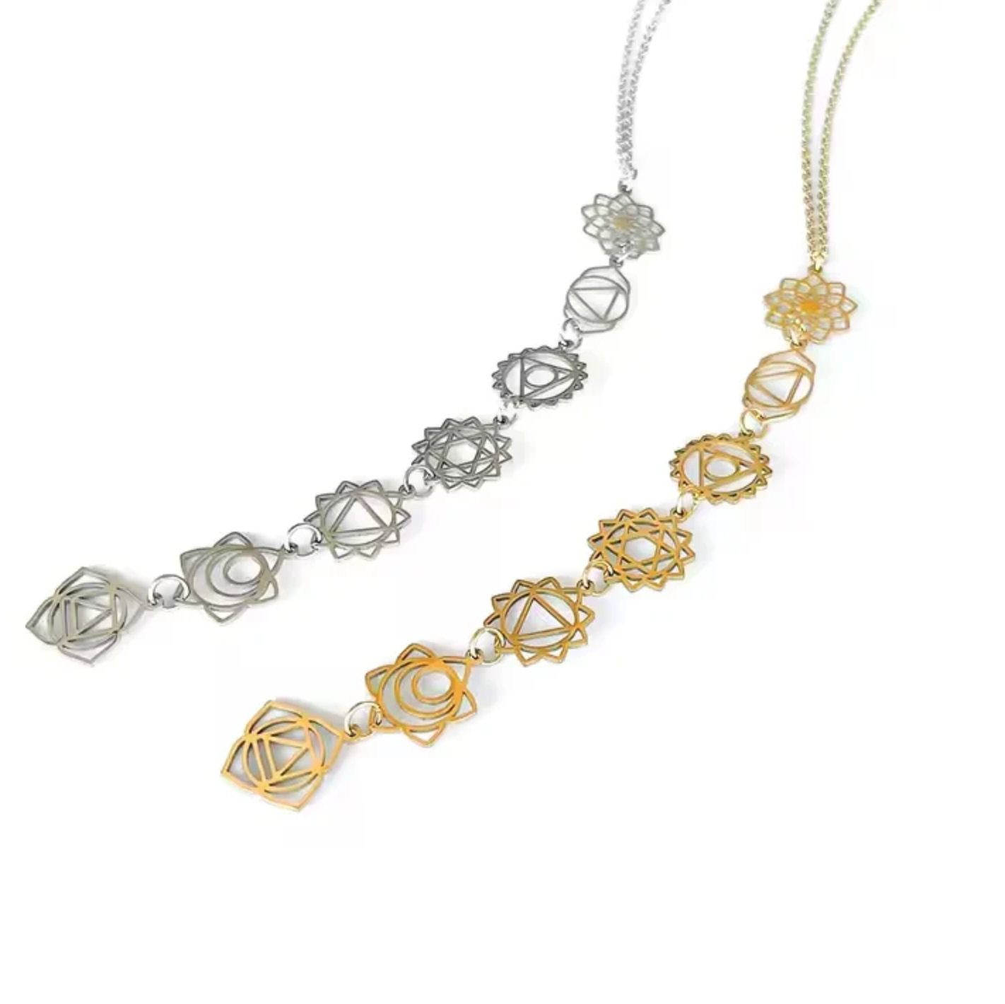 I sette chakra rappresentano i centri energetici del tuo corpo. Ogni simbolo di questa collana rappresenta un chakra e ti ricorda di armonizzare corpo, mente e spirito. Dall'ancoraggio alla fiducia in te stesso, fino all'intuizione e alla connessione spirituale: questa collana ti accompagna in ogni trasformazione.