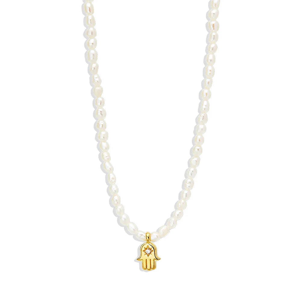 ✥ Materiali: Perle d'acqua dolce di alta qualità, ciondolo Hamsa in argento 925.