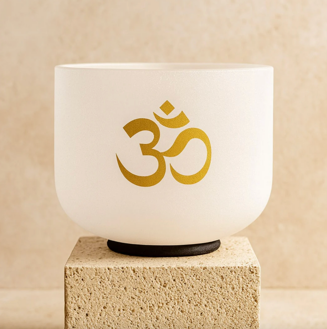 Kristall-Klangschale aus Quartz "OM"