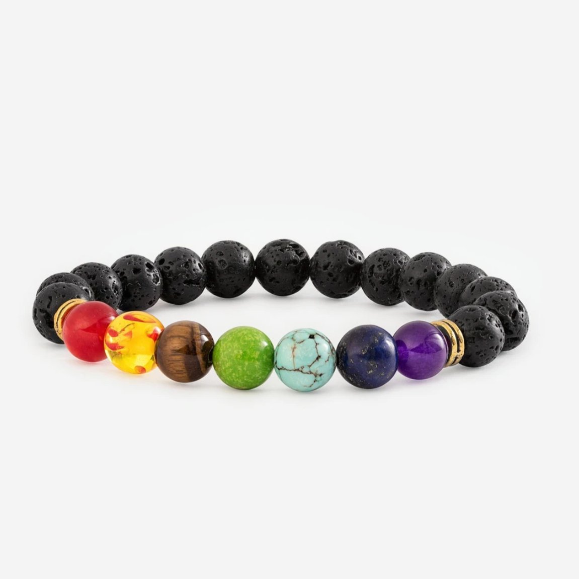 I 7 Chakra - Ognuna delle sette diverse perle di pietra preziosa corrisponde a uno dei sette chakra, che favoriscono la guarigione e la vitalità. Questa combinazione di pietre ti dona una profonda sensazione di energia positiva, ti permette di trovare pace interiore ed equilibrio e ti protegge dalle energie negative. Ti consente, grazie alla sua energia spirituale e vitale, di armonizzare corpo e mente.