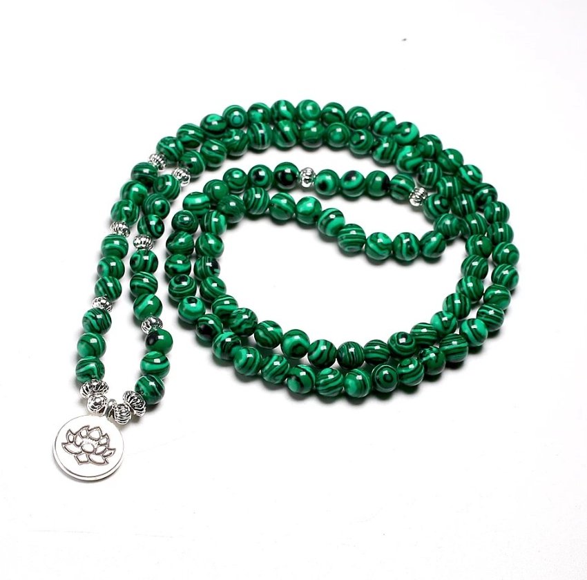 Entdecke die Natural Malachit - Mala Kette, handgefertigt aus lebendigen Malachit-Perlen, die dir spirituelle Heilung, Energie und Schutz verleihen. Trage dieses Schmuckstück als persönlichen Begleiter und symbolisiere Wachstum, Erneuerung und spirituelle Entwicklung, während du die transformative Kraft der Malachit-Perlen erlebst.