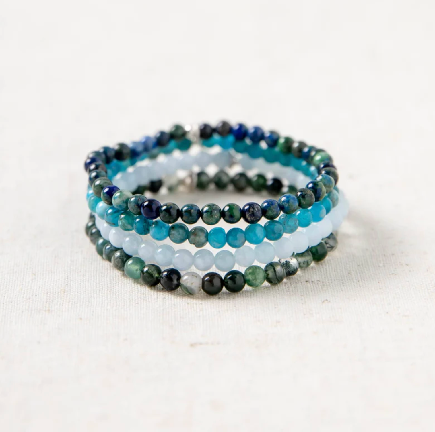 ✦ Perle di agata blu naturale, agata muschiata, apatite e crisocolla