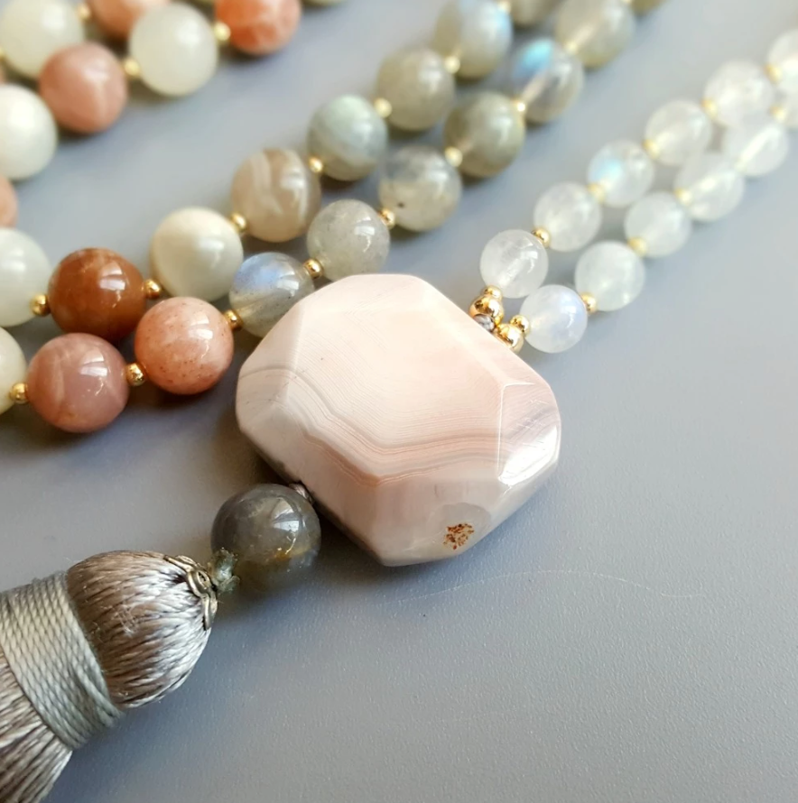 ✦ Hochwertige Perlen aus Mondstein, Labradorit, Sonnenstein und Quarz