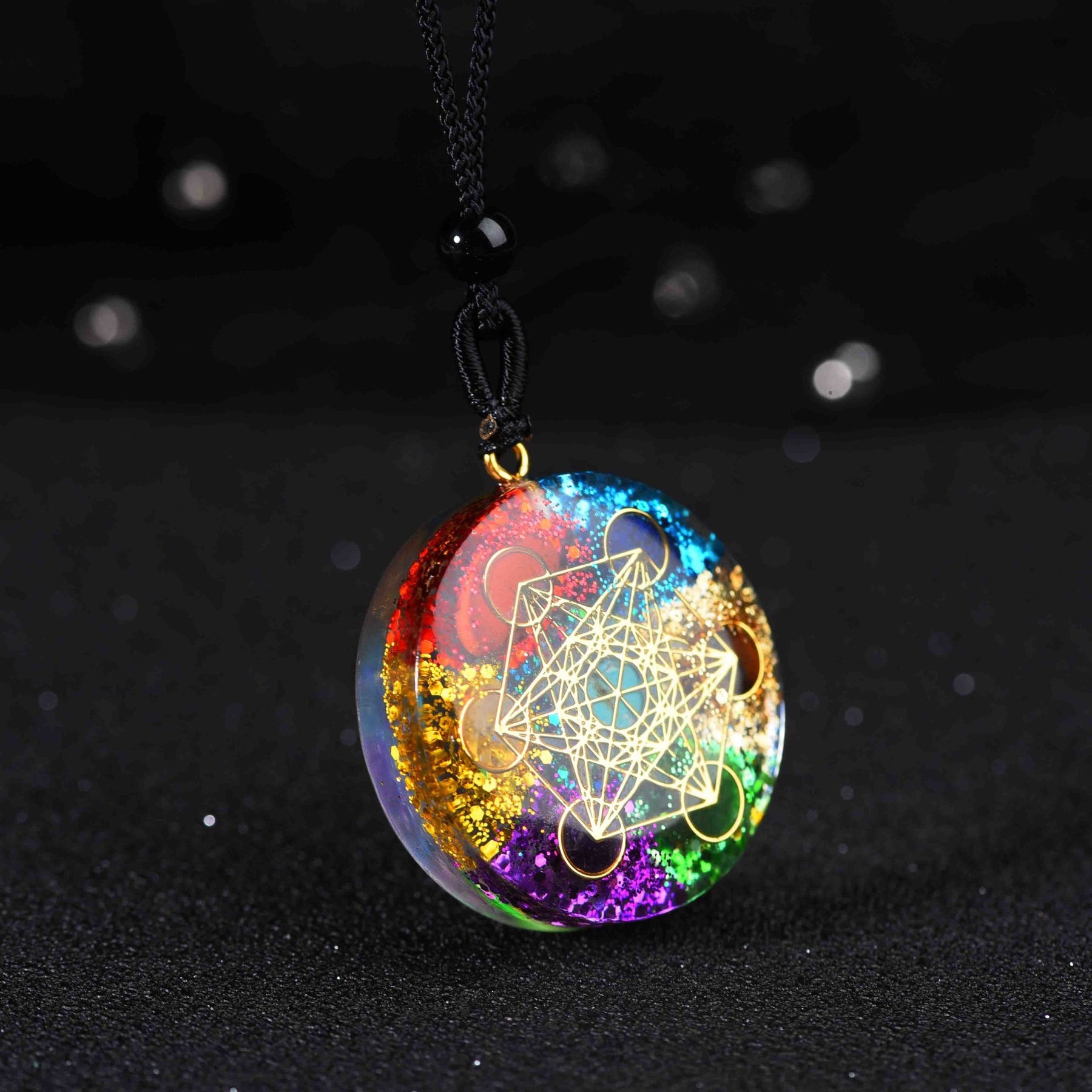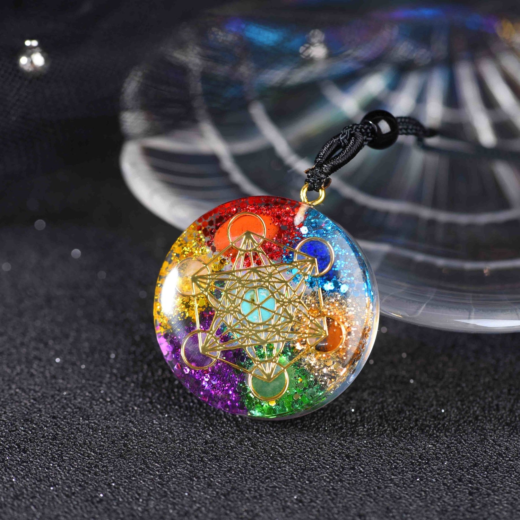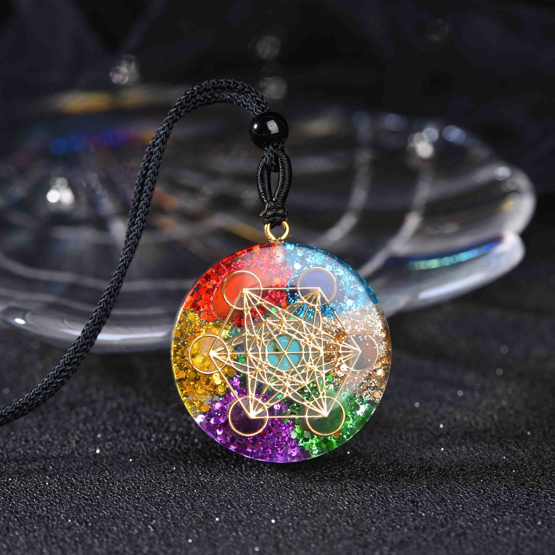 Questa collana unica Orgon Chakra Metatron unisce bellezza, simbolismo ed energia spirituale. È composta da sette potenti pietre preziose , ciascuna associata a uno dei chakra umani , armonizzando così corpo, mente e anima.