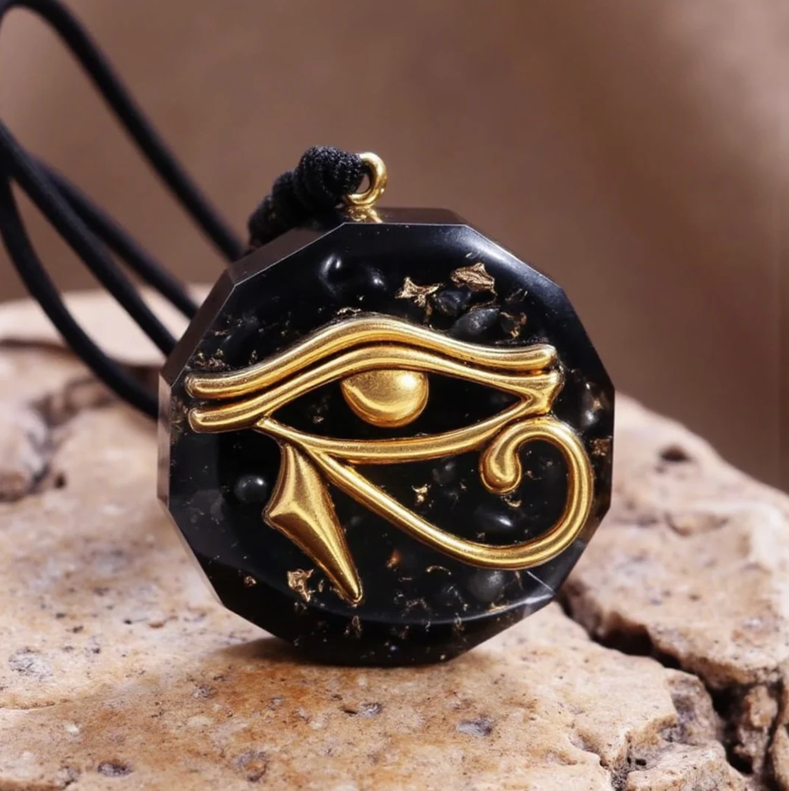 Questa potente collana in orgonite con l'Occhio di Horus è molto più di un semplice gioiello: è un compagno spirituale per la protezione, la chiarezza mentale e l'energia positiva.