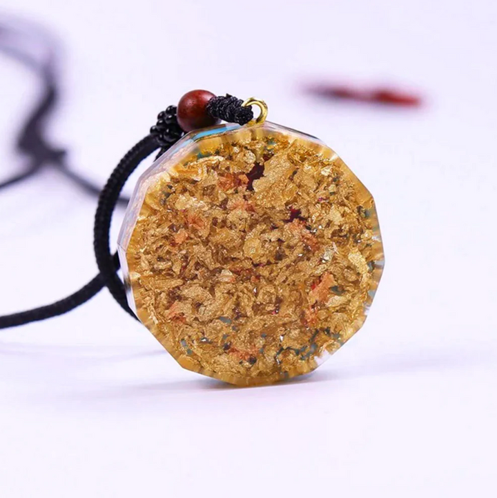 ✥ Pietre naturali di alta qualità: turchese , granato e foglia d'oro, incastonate in orgonite protettivo.