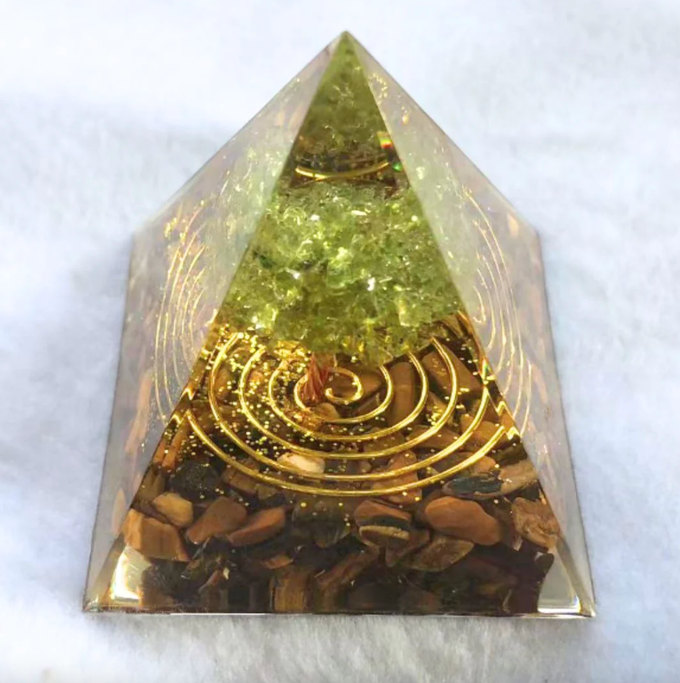 Peridot & Tigerauge Orgonit Pyramide – Dein energetischer Begleiter für Regeneration, Schutz und innere Stärke
