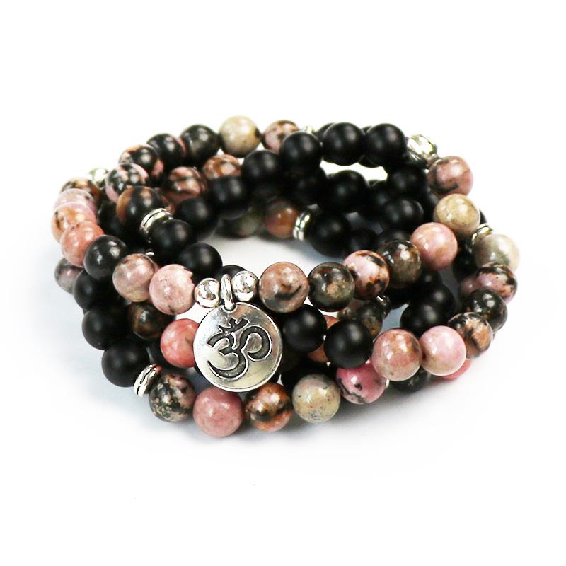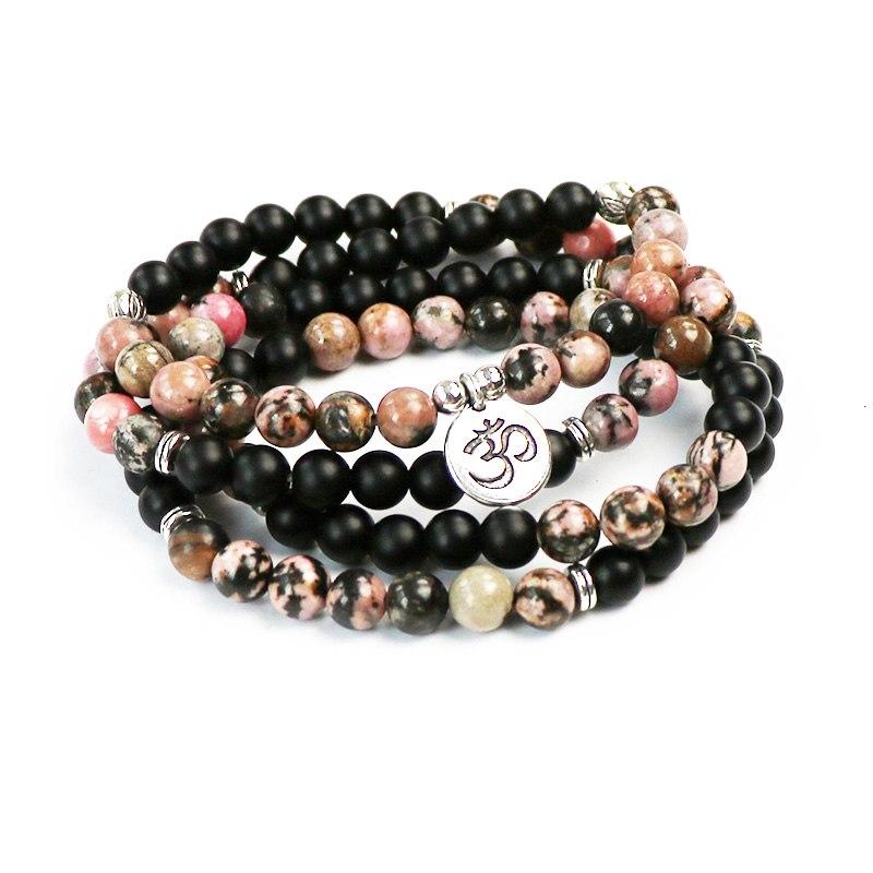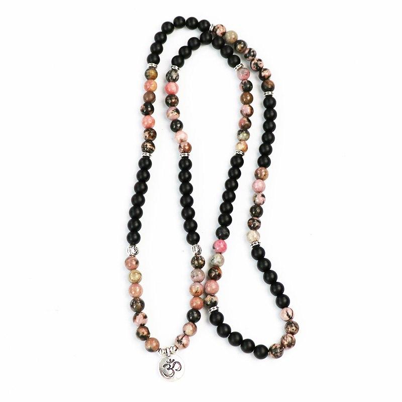 Black Onyx Rhodonit Mala Kette: Stärke, Schutz und Harmonie