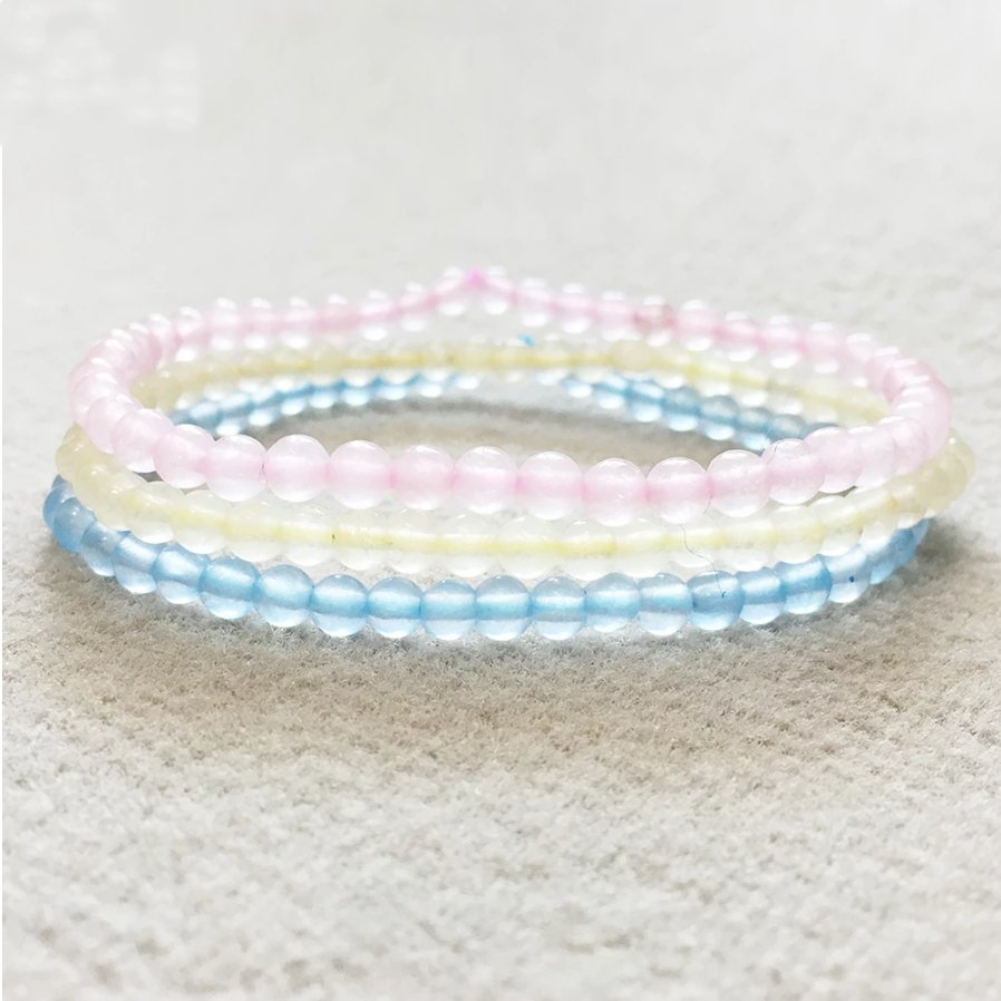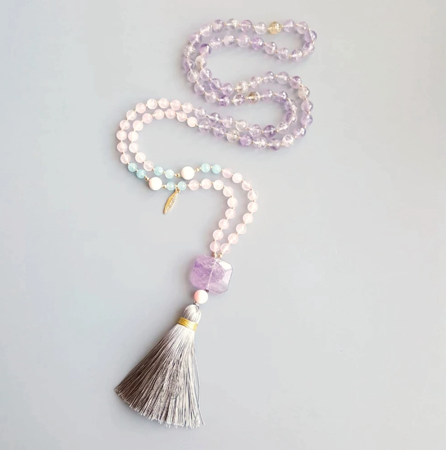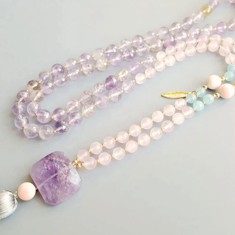 Wir bieten Rosenquarz-Armbänder, Mala-Ketten, Halsketten und Ringe – jedes Stück handgefertigt!