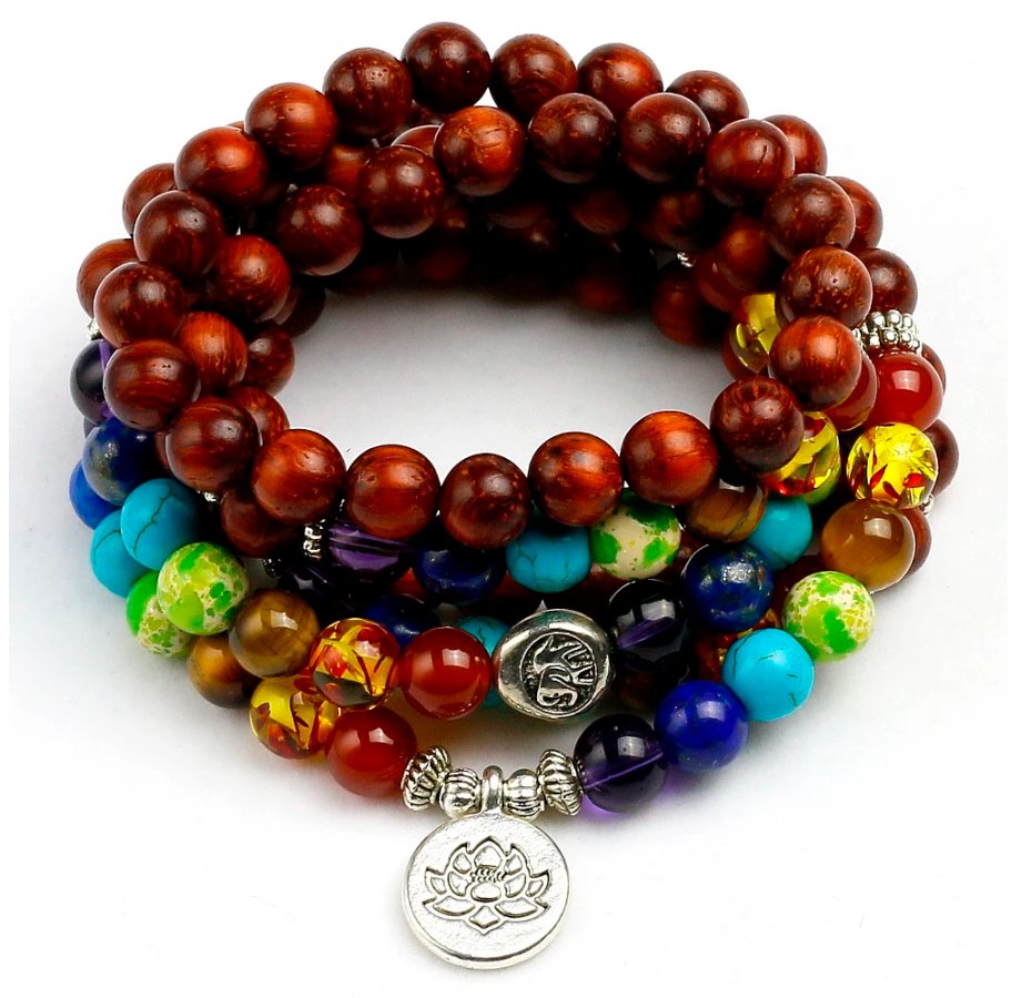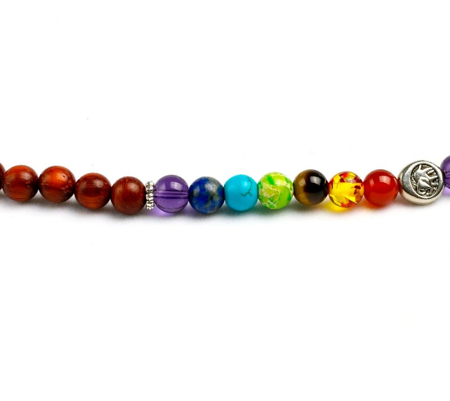 7 Chakra Sandelholz - Mala Kette: Innere Stärke & Erdung