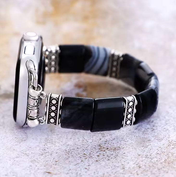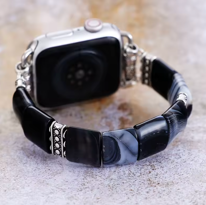 Verleihe deiner Apple Watch eine besondere Note mit diesem exklusiven Armband aus echtem schwarzem Onyx. Die tiefdunklen Natursteine in harmonischer Kombination mit grauen Akzenten machen dieses Armband zu einem stilvollen Begleiter – dezent, edel und zeitlos.