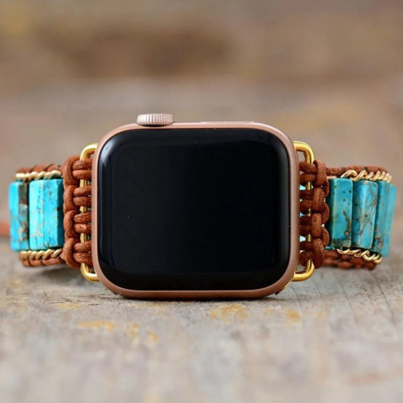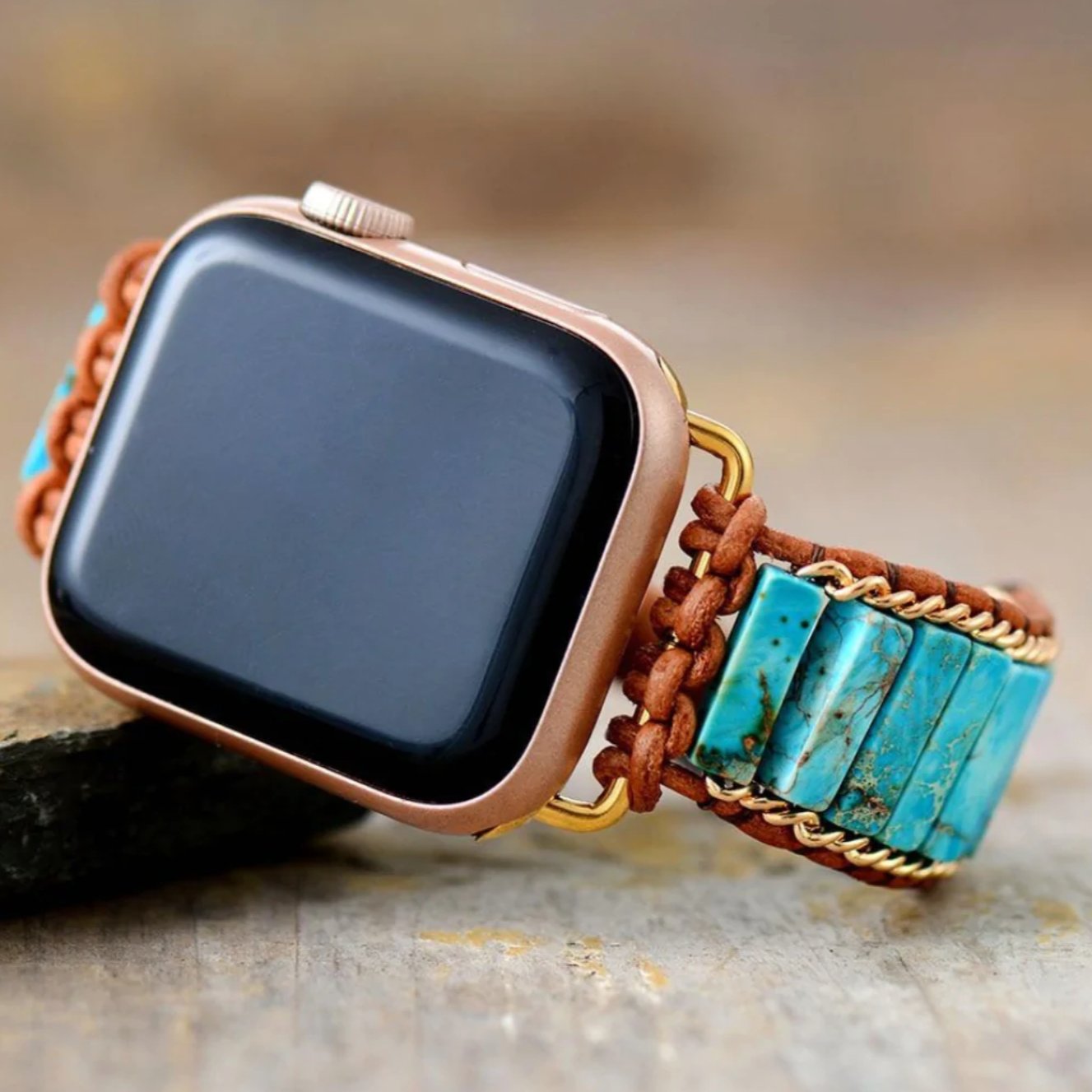 Dona al tuo Apple Watch un tocco di stile e modernità con questo esclusivo cinturino realizzato con luminosi turchesi naturali. Le preziose pietre turchesi rendono questo cinturino un accessorio elegante, che apporta sia proprietà rilassanti che energizzanti. È perfetto per ogni occasione: dalla palestra all'ufficio, fino a un evento speciale.